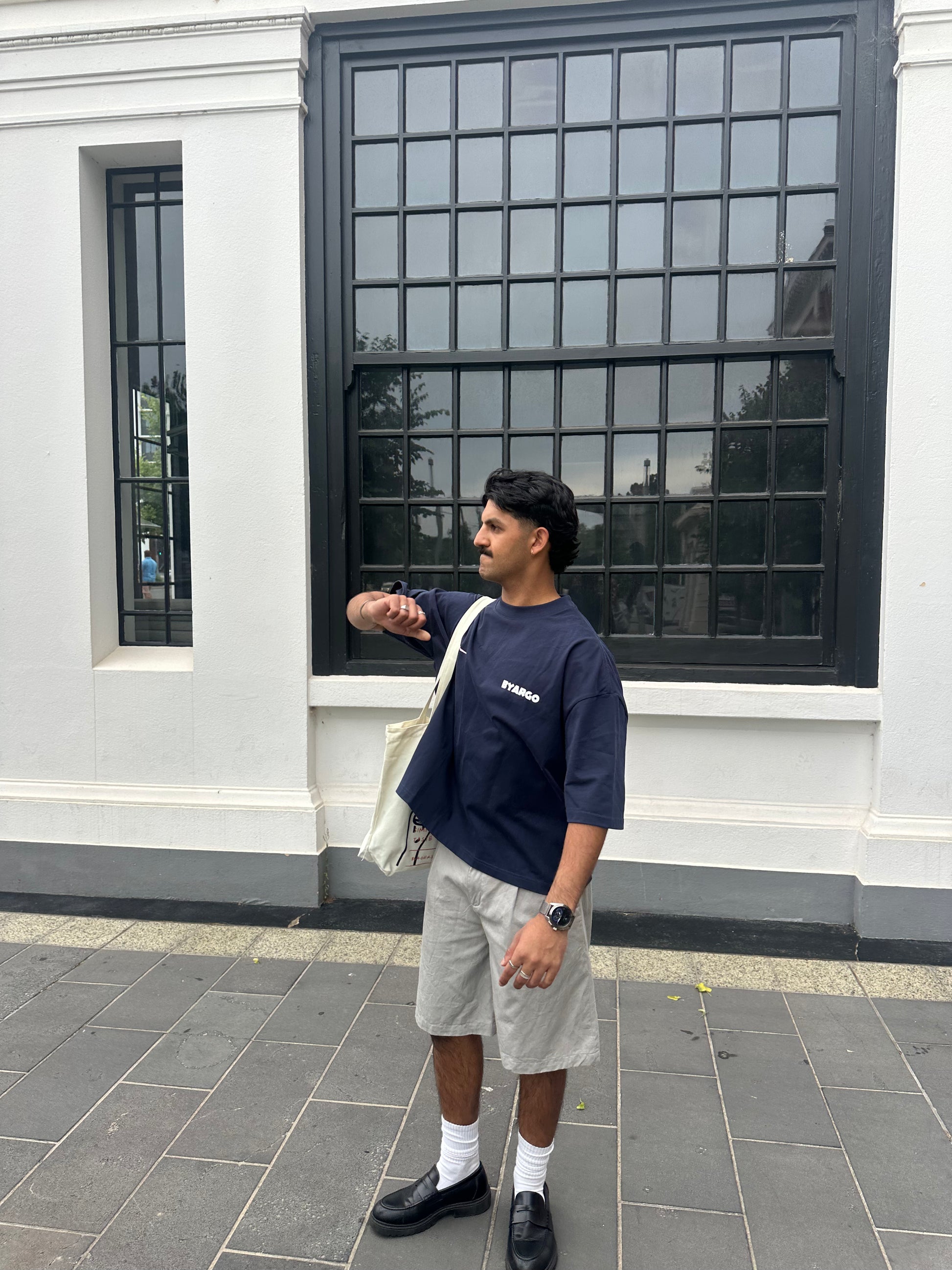 The Byargo Staple Tee – Navy features a relaxed boxy fit with dropped shoulders and a clean neckline. Crafted from premium cotton, it’s built for comfort while holding its shape — wear it solo or layered year-round.